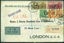 1937 (23 Feb.) A FFC cover by Eurasia from Yunnan-Hanoi, bearing HK print 50c brown tied by special comm. 'KUNMING' cds,