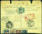 1942 (15 Jan.) A ROC parcel received notice, bearing various stamps cut into half size, including anti-bandit char. 'Chengtu' (
