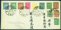 1945 (3 Sept.) A FDC of the Victory, addressed to British Army Aid Group, Hingning, Canton. Bearing various SYS Pacheng print