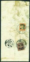 SYS brown and  25c on $50 on 1c SYS orange, both tied by single ring bisected 'WEST SZECHWAN' Letter Box, with char. 'EAST
