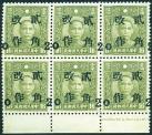 1943 A small selection of Surcharged of 20 Cents blocks or pairs, mostly with surcharged shifting varieties, total 10 items, mint and