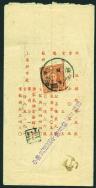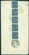 1946 (16 Sept.) A cover from Hweian to Shanghai, bearing SYS Chungking Dah Tung print $10 blue vertical strip of 5 tied by
