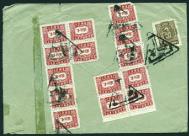 postage mark on front, on reverse with SYS $100 brown and 2nd Central Trust postage due $20 carmine x 14. few tears at the edges.