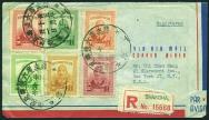 1946 (31 Oct.) An airmail reg. FDC of 60th Birthday of Chiang Kai Shek complete set of 6 to New York, USA, tied by comm.