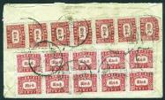 and 'T' postage due mark alongside, on reverse with 2nd Central Trust postage due $20 carmine strip of 7 and $30 carmine block of