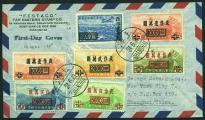 1948 (24 June) An air mail cover to New York, USA, bearing air mail surcharged of high values in rectangular box complete set of