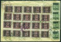 1948 A mixed parcel post stamps used on a commemoration sheet, tied by bilingual 'PEIPING/29.8.48' cds, total 19 stamps, fine.