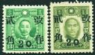 1942 A small selection of surcharged 20c on SYS and Martyrs issues in 2 stock cards, with various of destination surcharged.
