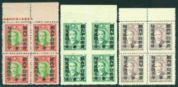 Tung print, $2,000 red brown & red London print with original gum, $3,000 blue Shanghai Dah Tung print, one of the rarest Silver