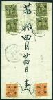 1940's An express letter from Tsinan to Shanghai, on reverse bearing opt. 'North China' half value surch. 4c on 8c on SYS 8c green