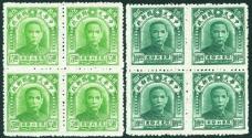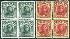 and $109 blue green, all on block of 4, no gum as issued. Very fine and rare. Chan NE56, NE57, NE59. NE61. Photo