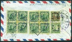 1946 (30 Oct.) An air mail cover from Peiping to England, on reverse bearing the rare Chinchow surcharged $5 on $50 on 21c