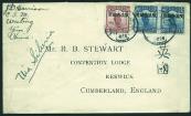 1932 (10 Feb.) A cover from Yunnan to Cumberland, England, bearing opt. 'For Use In Yunnan' on Junk 5c rose mauve, 20c red