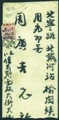 Manchukuo issue, 50f. on 10f. Japanese characters (Chan MOHJ.14Aii.2), tied by Jia Mu Si 28.5.35 cds, roughly opened at bottom,