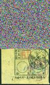 X) 34.11.2 cds and a rhombus  handstamp in red, part torn missing at upper left corner and toning. Photo