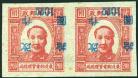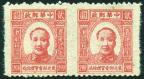 1946 Chairman Mao, 1st print $2 rose red horizontal pair imperforate between, mint and no gum as issued. Yang NE2c. Photo