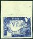 1946 Siman, Ki Kiang (Ximan, Kiren-Heilung Kiang)  area, Dove of Peace, 50c violet blue with large sheet margin on top. Unused.