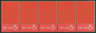 1967 W1 Chairman Mao's Thought complete set, the Golden colour se-tenant strip with gold colour faded at top and Red se-tenant