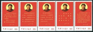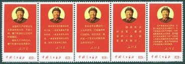 1968 Instructions From Chairman Mao (W10). Complete set of 5 in strip. Unmounted mint, original gum. Folded between third