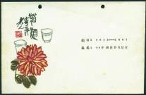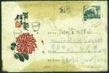 1958 No value stationery envelopes x 2, both with the same paintings of Qi Baishi, Chrysanthemums & Wine. One with printed