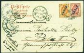 1904 A pc from Shanghai to Russia, bearing opt. 'KITAI' on 1k & 3k, tied by unclear 'SHANGHAI' Russian P.O cds, with char.