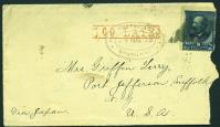 N.Y. SEP 24 1889 arrival oval datestamp, roughly opened at right, light age toning. Scarce usage of "Too Late" on US Post Office