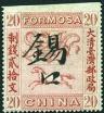 1888 The Horse and Dragon issues, "Sikow" handwritten on 20 cash red, mint original gum lightly hinged, very fine. Chan F17.