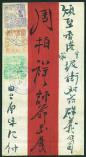 1895 (12 Oct.) A red band cover to Hong Kong, bearing 1st print Black Flag 30 cash yellow green, 50 cash carmine and 100 cash