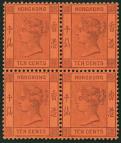 1891 QV 3rd issue watermark Crown CA, 10c purple on red paper block of 4, unmounted and very fresh colour, bottom right stamp