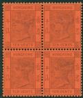 1891 QV 6th issue, Wmk. CA, 10c purple on red paper, block of four, mint, part gum, hinged, still fine. Photo