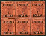1891 Opt. 'SPECIMEN' on QV 4th surcharged without Chinese char. complete set of 3, 50c horiz strip of 3, 20c and $1 block of 6,