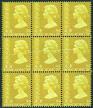 1977 QE Machin portrait, new value 70c yellow block of 9, with horiz. paper folded variety appears on center 3 stamps, unmounted