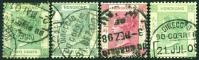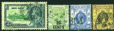 Selection of four HK QV stamps, 2c x 3 & 4c, all used with partial strikes of various Dollar chops, one age toning, others fine.