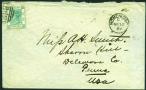 1889 (30 Mar.) A cover to USA, bearing QV 10c green tied by 'B62' obliterators, matching the 'HONG.KONG/30.3.89' cds, with