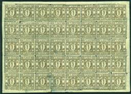 1872 Japan Imperial Crest and Branches of Kiri, 1/2 s brown native wove paper sheet of 40 with selvedge all around, with reinforced