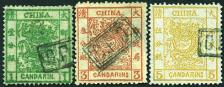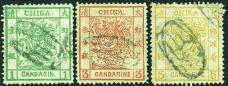 1878 Large Dragon thin paper, 1 cd to 5 cds complete set of 3, each tied by Custom Postal Department 'C.P.D' frame chop in black,