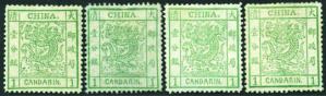 1878 Large Dragon thin paper, 1 cd green x 4 mint, 2 with dry gum and 2 with no gum, Chan 1. Photo