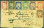 1895 (27 July) An incoming cover front from Brunei to England, bearing Brunei 1st issues 7 stamps total value 29 1/2c, tied by