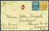 1897 A cover from Arequipa, Peru to California, USA, via New York. Bearing 1896 issue 2c blue and 20 orange tied by faint Pure