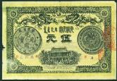 Ching Dynasty Kuang Hsu Yuan Pao Note (7.2 mace) 5 Dollar Canton Province issued. Edge damaged. Poor condition. Photo