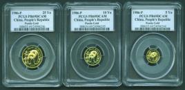 1986 RPC Panda Refined Gold Coin 5 pcs, 1/20oz. 1/10oz. 1/4oz. 1/2oz. 1oz. All PCGS PR69DCAM. Photo