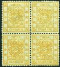1878 Large Dragon thin paper, 5 cds orange block of 4 mint original gum, top left stamp with long stroke of character 'Dah' '