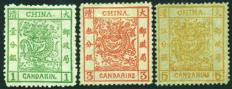 1878-83 Large Dragon mixed printings, thin paper 5 cds orange mint no gum. Thick paper 1 cd green mint original gum lightly