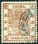 1883 Customs Large Dragon, thick paper, clean cut perforations, 3Cds. Vermilion, used with partial strike of CUSTOMS TAKU