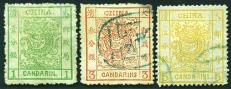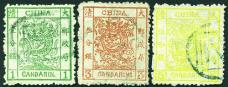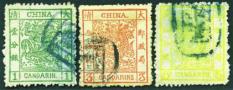 1885 Large Dragon thick paper rough perf. 1 cd to 5 cds complete set of 3, very fine used. Chan 10-12. Photo