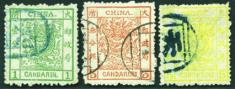 1878-85 Large Dragon 1 cd and 3cds thick paper rough perf., 5 cds thin paper, 1 cd toned and 3 cds damaged at right perf. All tied