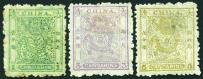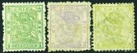 1885 Small Dragon rough perf. 1 cd to 5 cds complete set of 3, 1 cd with toned spots, hinged remnant. Photo