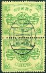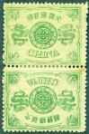 1894 Dowager first printing 9 cds dull green vert. pair, tied by full 'SHANGHAI' seal chop in blue, fine used. Chan 28. Photo