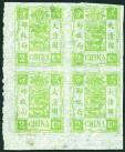 1894 Dowager imperf. proof, 2c yellow green block of 4 on very thin white paper, very fresh. Chan 23P. Photo