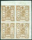 1894 Dowager imperforate proof on very thin laid paper, 6 cds chocolate block of 4, very lightly hinged on the upper sheet margin